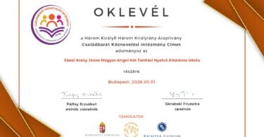 Elnyertük a Családbarát Köznevelési Intézmény Díjat