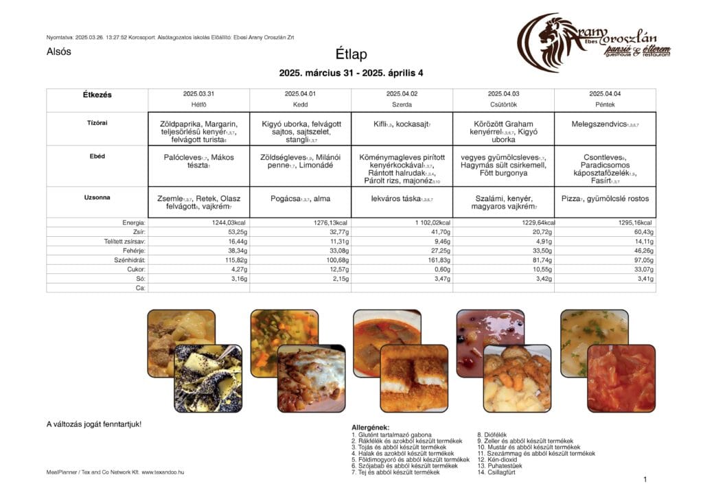 Étlap 2025. március 31 – április 4.