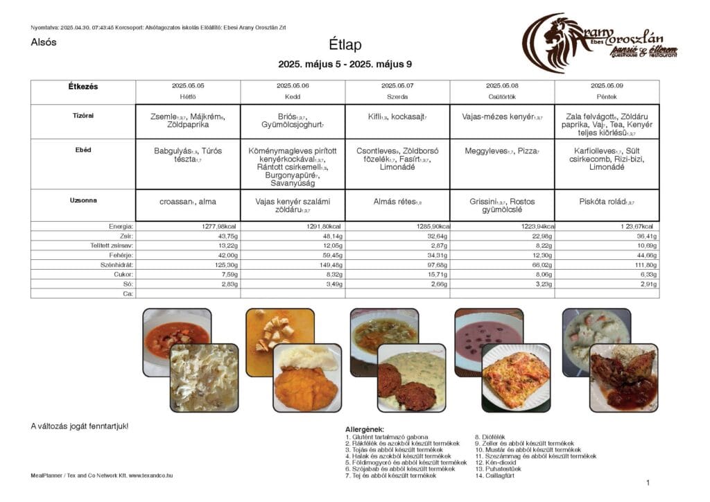 Étlap 2025. május 5 – 9.