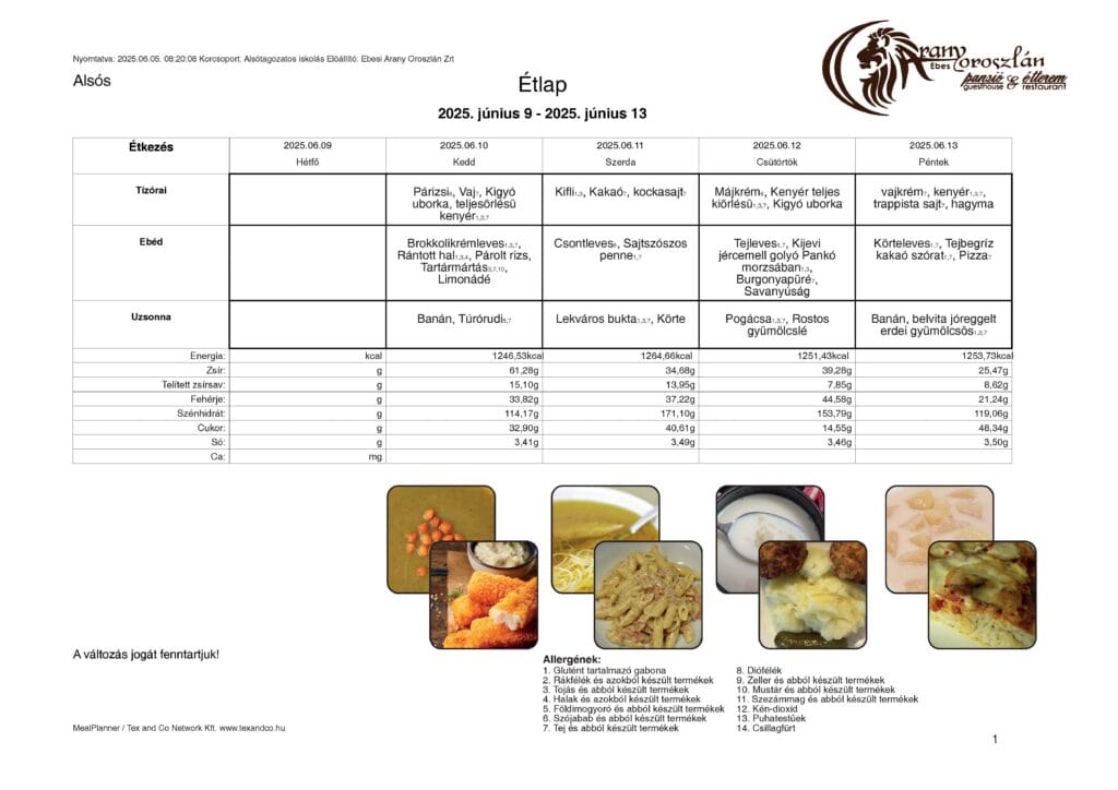 Étlap 2025. június 10 – 13.
