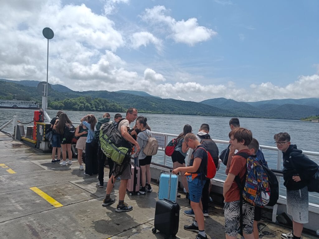 Sokan ijesztgették a rossz időt pulóverrel, esőkabáttal és esernyővel, míg mások – „Carpe diem!” – felkiáltással rövidnadrág-póló-szandál kombinációval vágtak neki az ismeretlennek. A kellemes vonatozást még a kisebb-nagyobb késések sem árnyékolták be. Nem úgy az eget, ami felhősen, heves nyári záporral fogadott a nagymarosi állomáson. Hanem a középtávú, – kb. 800 m – sprint, amivel elcsíptük a kompot- felpezsdítette vérünket, s máris a fenségesen hömpölygő Dunán utaztunk a túlpartig.