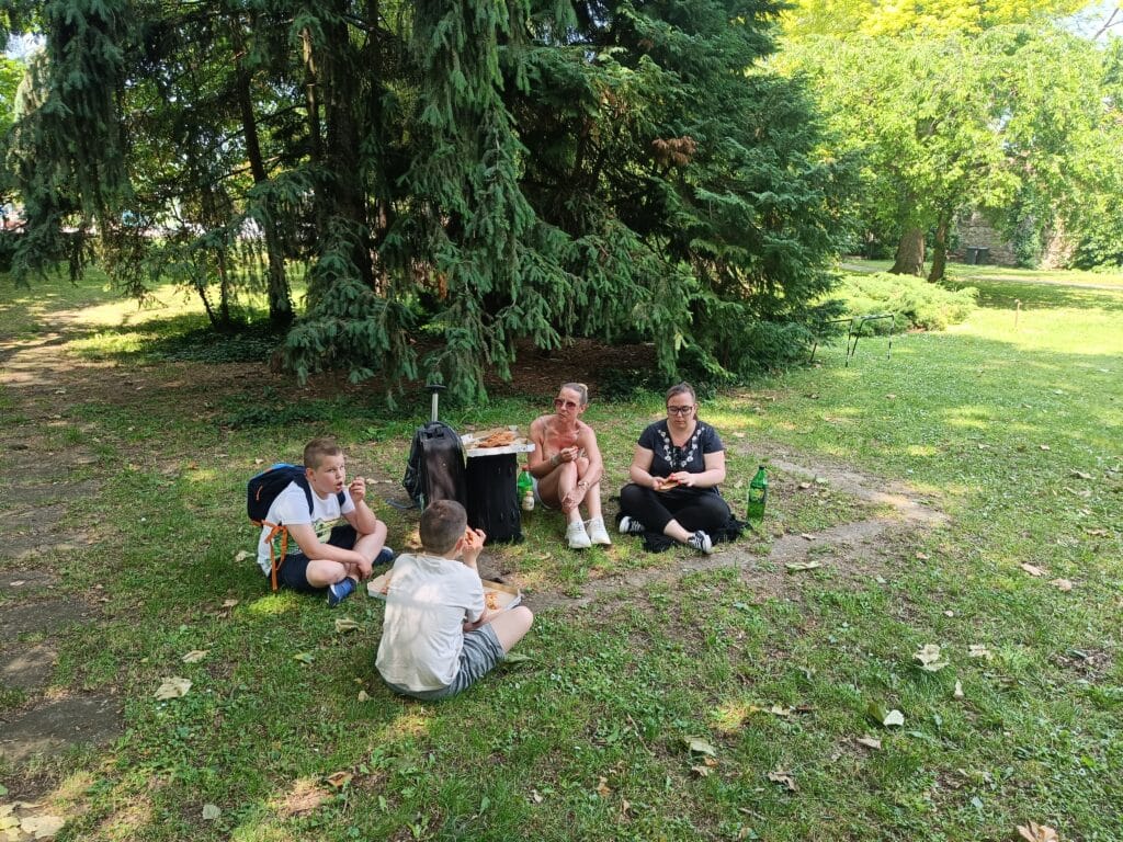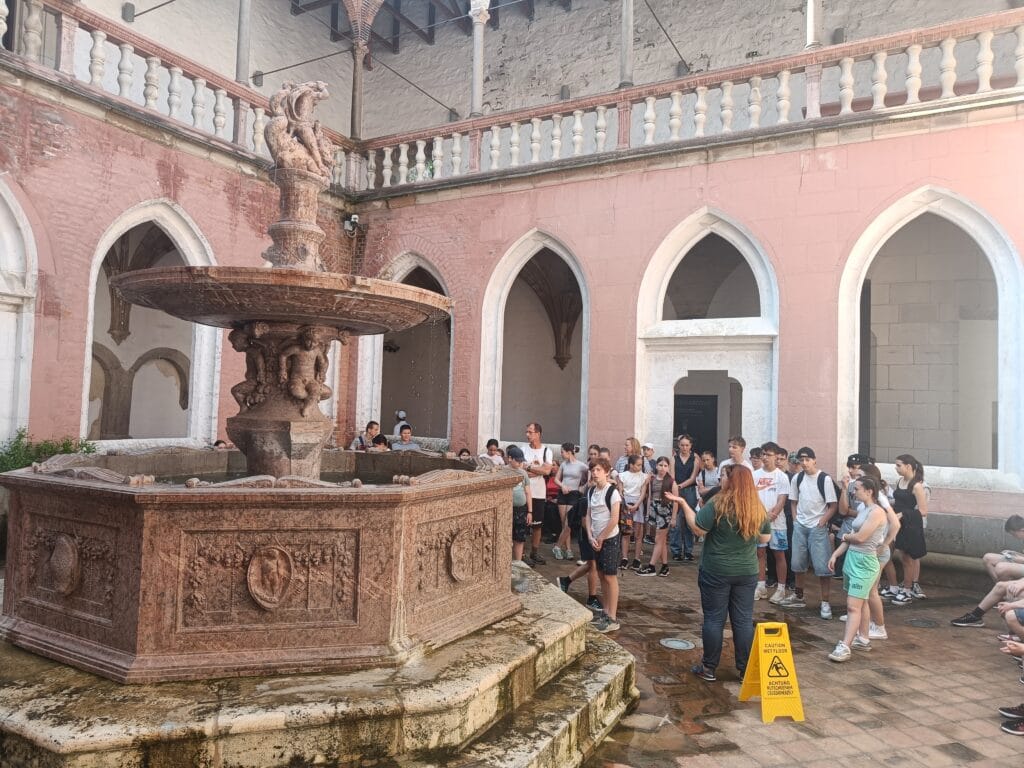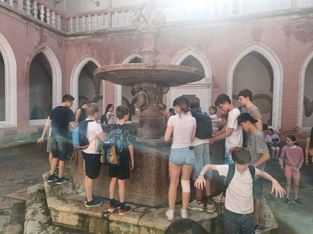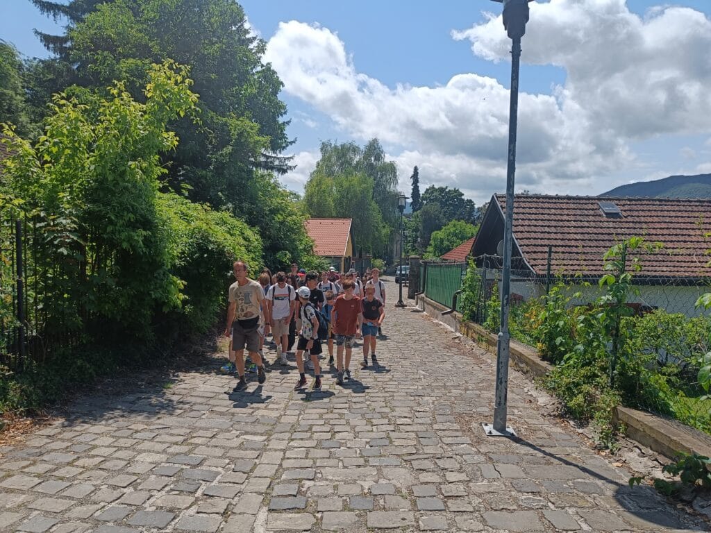 A másnapi reggelit ifjú tehetségeink rövidúton elpusztították, majd a 9 órás nyitásra már a Királyi Palota kapuinál toporogtunk. Egy csodálatos tárlatvezetésen megismertük a reneszánsz palota minden szegletét: a Mátyás korabeli Herkules-kúttól a reneszánsz kertig, borzonghattunk Zách Felicián merényletének részletein is. Feltöltődve a történelem érdekességeitől és a csavaros fagyitól, szállásunk parkjában elfogyasztottuk a legjobb dunabogdányi pizzát, majd ismét vízre szálltunk, hogy a hazafelé induló vonat ablakából búcsút vegyünk a királyi Visegrádtól.