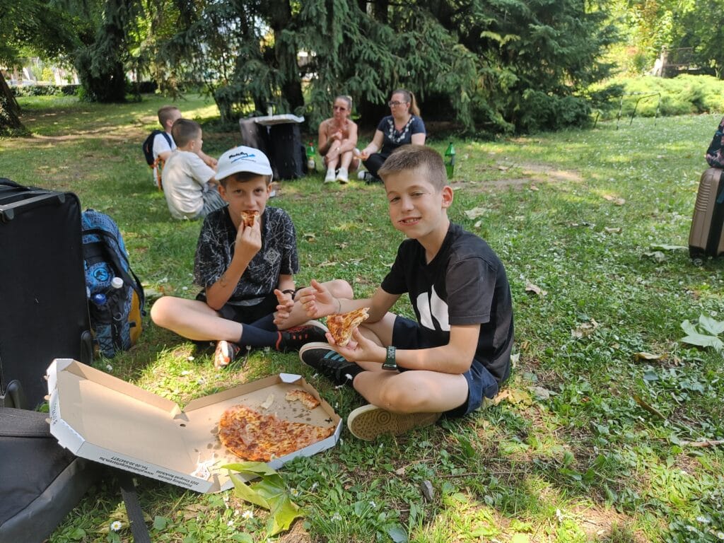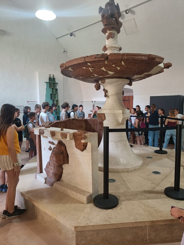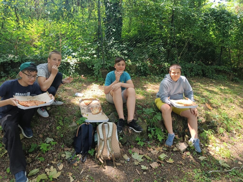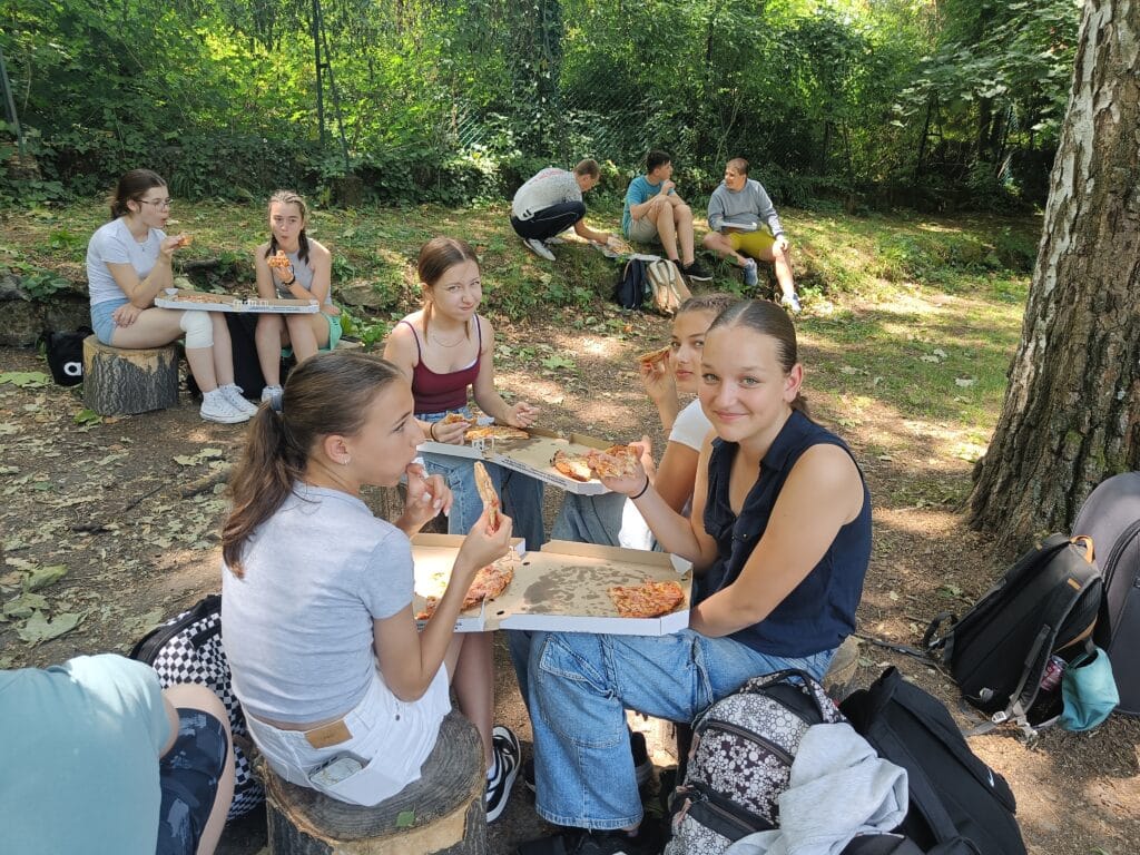 A másnapi reggelit ifjú tehetségeink rövidúton elpusztították, majd a 9 órás nyitásra már a Királyi Palota kapuinál toporogtunk. Egy csodálatos tárlatvezetésen megismertük a reneszánsz palota minden szegletét: a Mátyás korabeli Herkules-kúttól a reneszánsz kertig, borzonghattunk Zách Felicián merényletének részletein is. Feltöltődve a történelem érdekességeitől és a csavaros fagyitól, szállásunk parkjában elfogyasztottuk a legjobb dunabogdányi pizzát, majd ismét vízre szálltunk, hogy a hazafelé induló vonat ablakából búcsút vegyünk a királyi Visegrádtól.