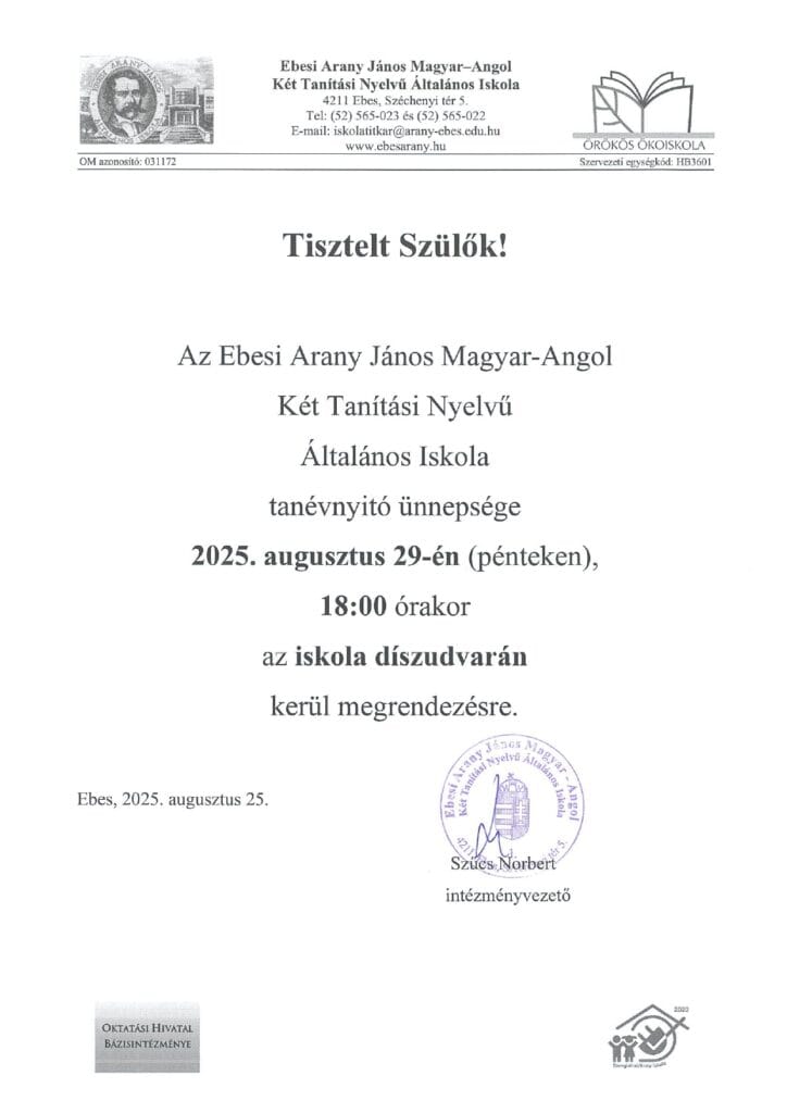 Tanévnyitó ünnepség 2025. augusztus 29.