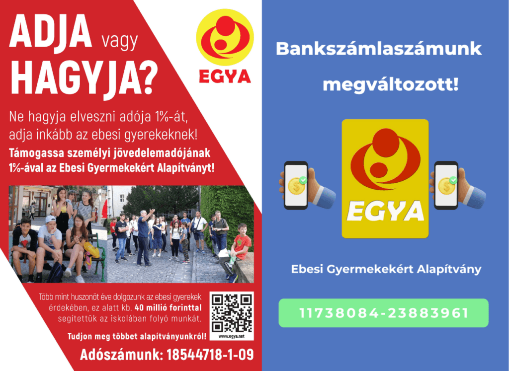 Örömmel értesítjük Önöket, hogy a NAV tájékoztatása szerint az 1%-os felajánlások összege az Ebesi Gyermekekért Alapítvány részére idén rekordösszeget elérve 1.555.518 Ft.