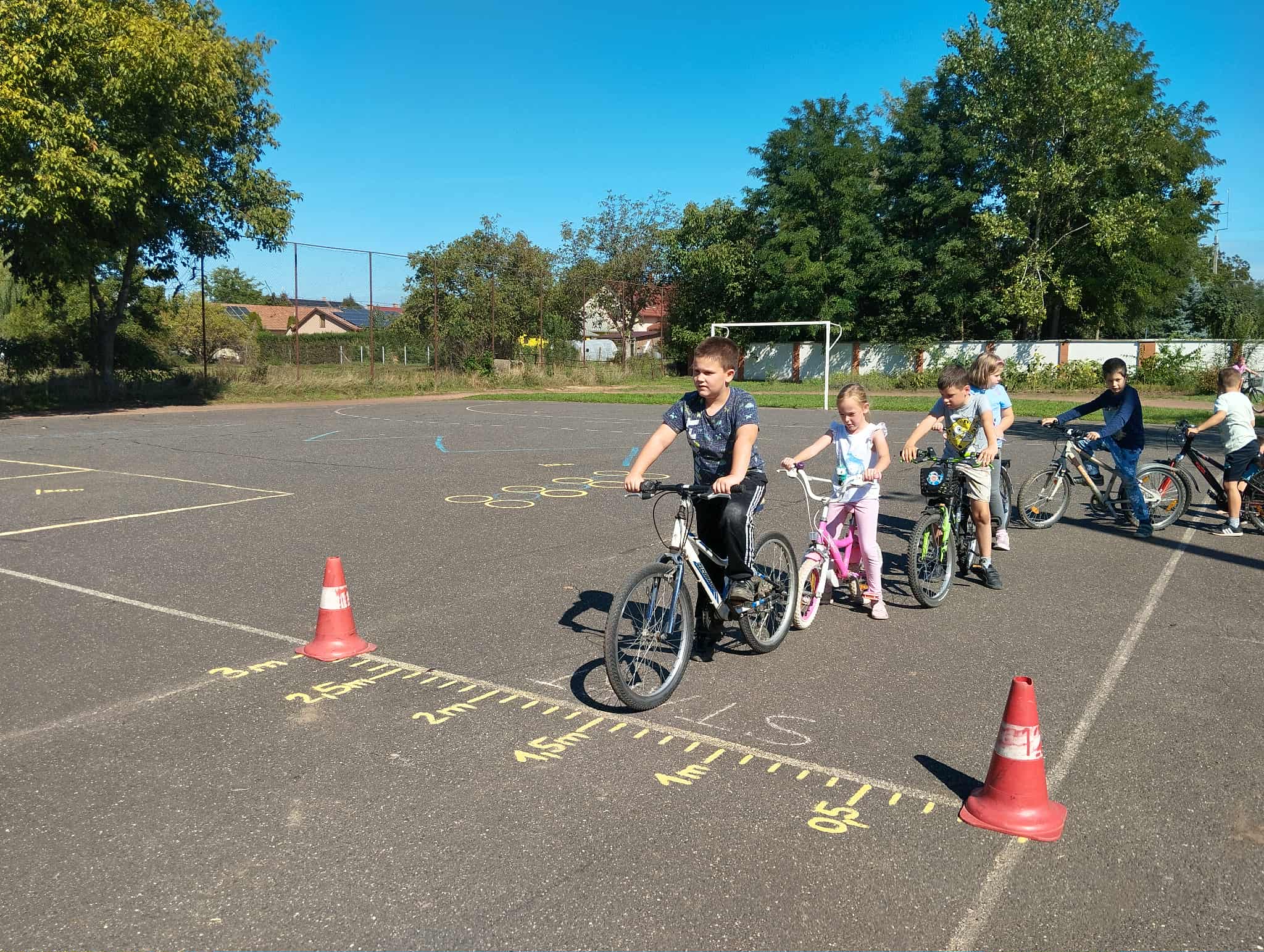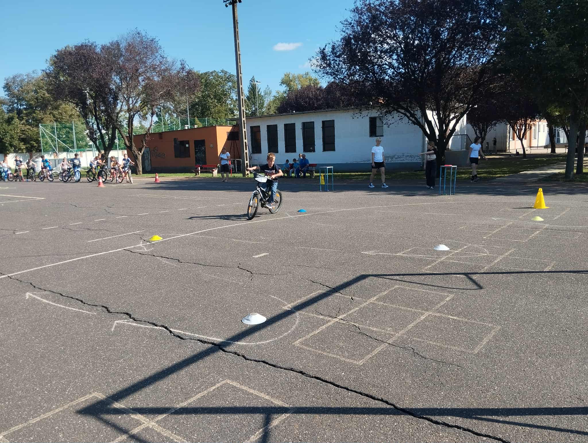 Kedden Kerékpáros Ügyességi Versenyt szerveztünk, de az időjárás közbeszólt, így pénteken 14 órától minden osztályból 3 ügyes gyerek mutatta meg, milyen biztosan tud a kerékpárjával ügyességi feladatokat végrehajtani.