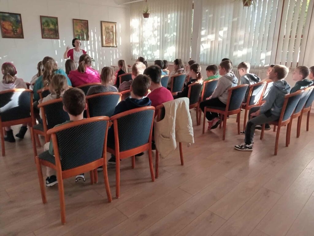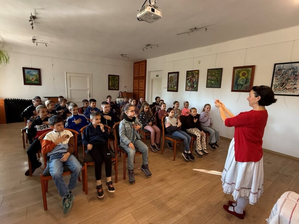 2025. október 7-én a 3. évfolyam élőszavas mesemondást hallgathatott meg tőle a magyar népmese kincseiből. Meseválogatásába rövidebb történeteket fűzött egybe és a közönséggel együtt szőtte a mese fonalát. Egy olyan mondókát is megtanított a gyerekekkel, amit még a nagymamájától tanult. Bevonta előadásába a gyerekeket, akik élvezettel hallgatták és játszották a meséket, utánozták a kakas hangját, átélték a szerepeket. Mindenki szeretett volna vele együtt a színpadra állni, részt venni a mesében, a mesélésben. Természetesen a tanító nénik is szerepeltek a láncmesében.