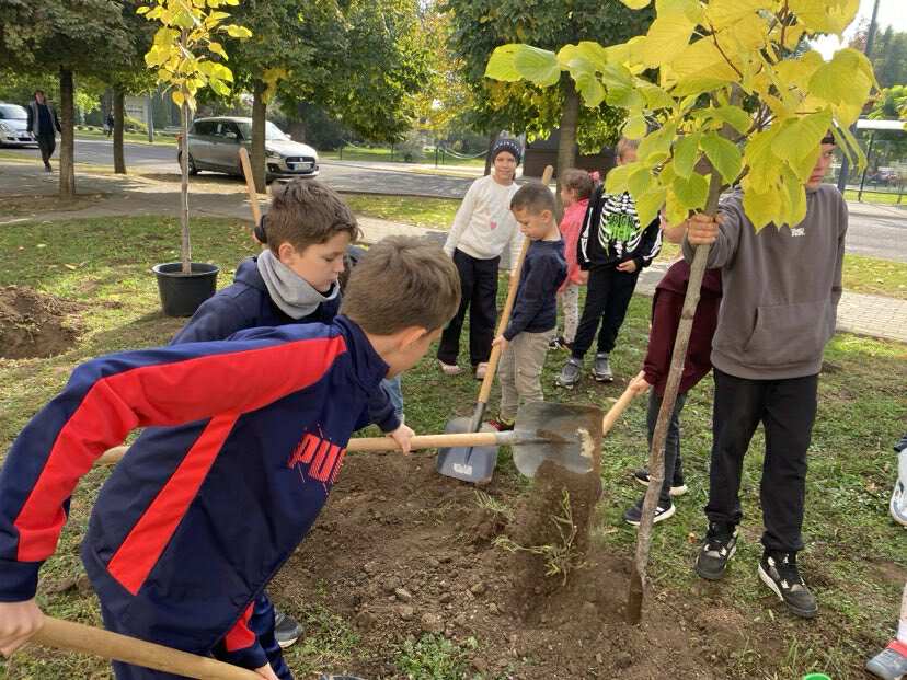 A komposztálás ünnepén a természet körforgását és a fenntarthatóság fontosságát ünnepeljük. Iskolánk, mint örökös ökoiskola, különösen nagy hangsúlyt fektet a környezettudatosságra, ezért mi faültetéssel emlékeztünk meg erről a napról. Hiszen a fák is a környezet megóvásának és a természetes egyensúly fenntartásának szimbólumai. A faültetés nemcsak a levegő tisztaságához járul hozzá, hanem emlékeztet arra is, hogy minden apró lépés számít, amikor az emberiség jövőjét óvjuk.