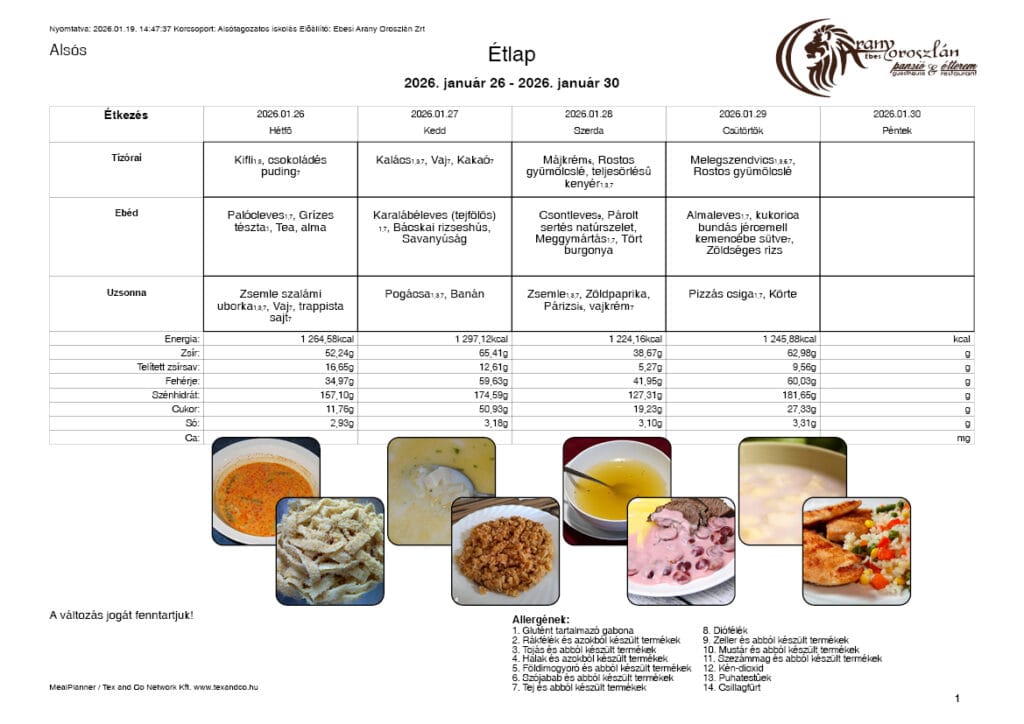 Étlap 2026. január 26 – 29.