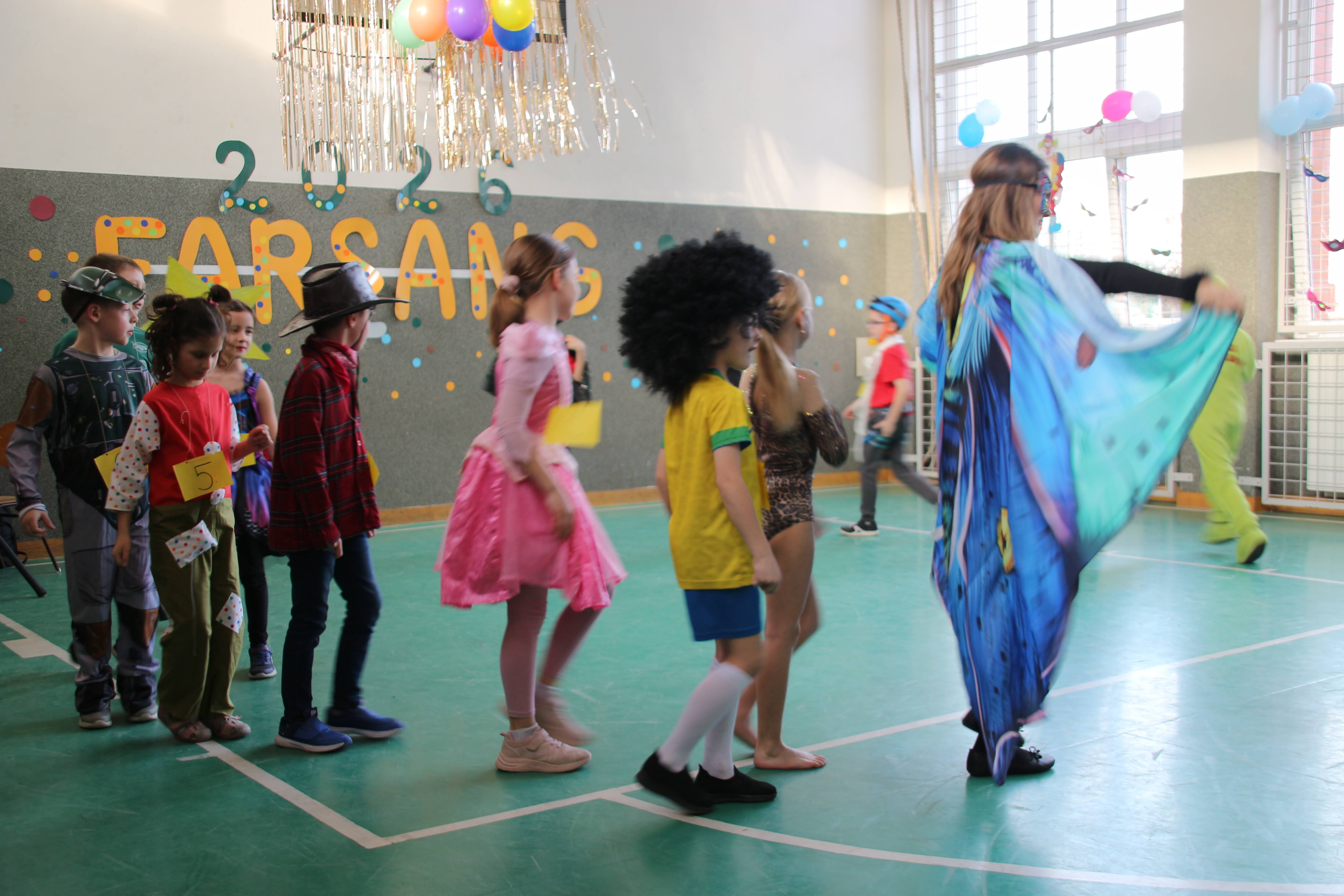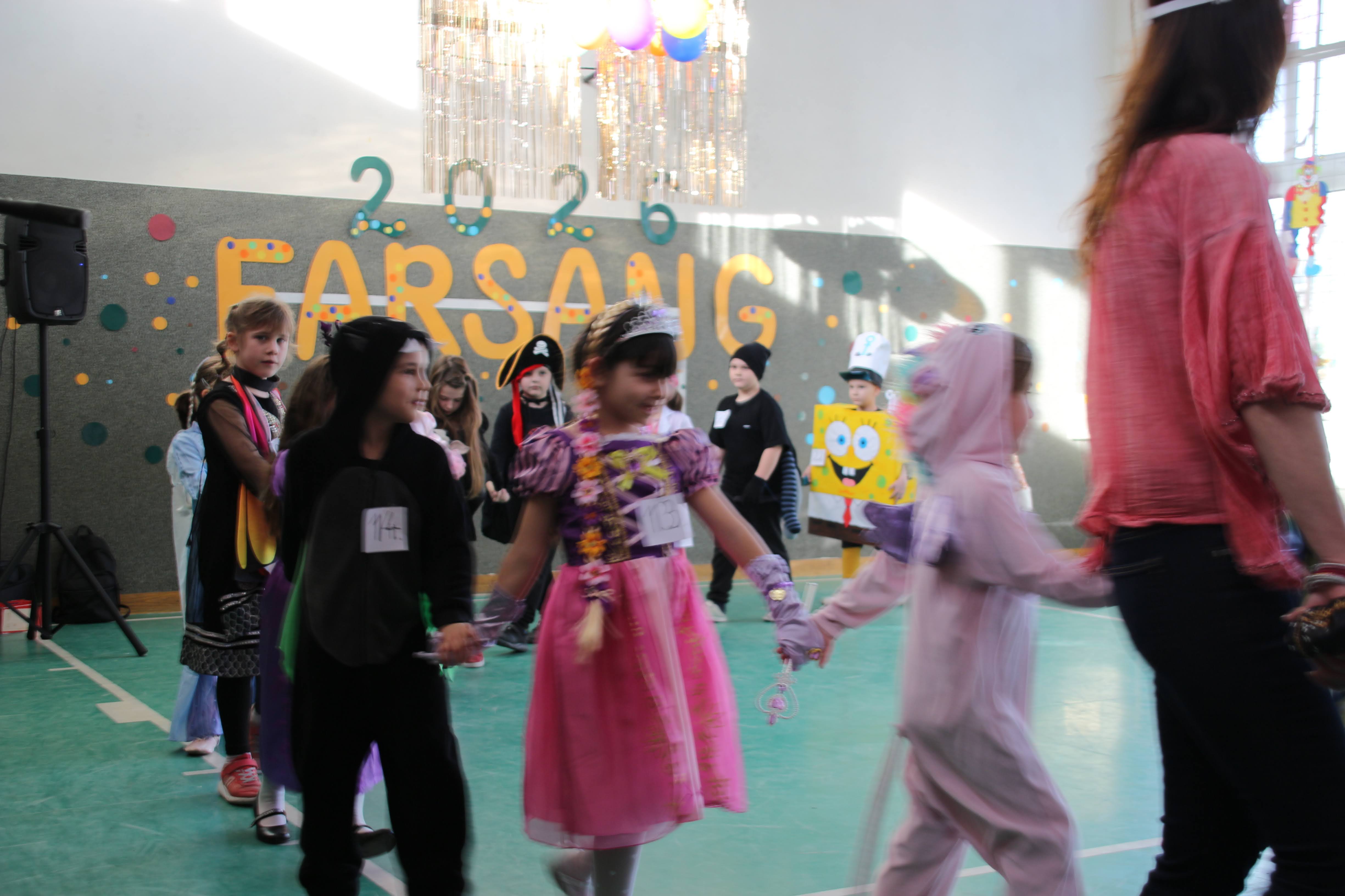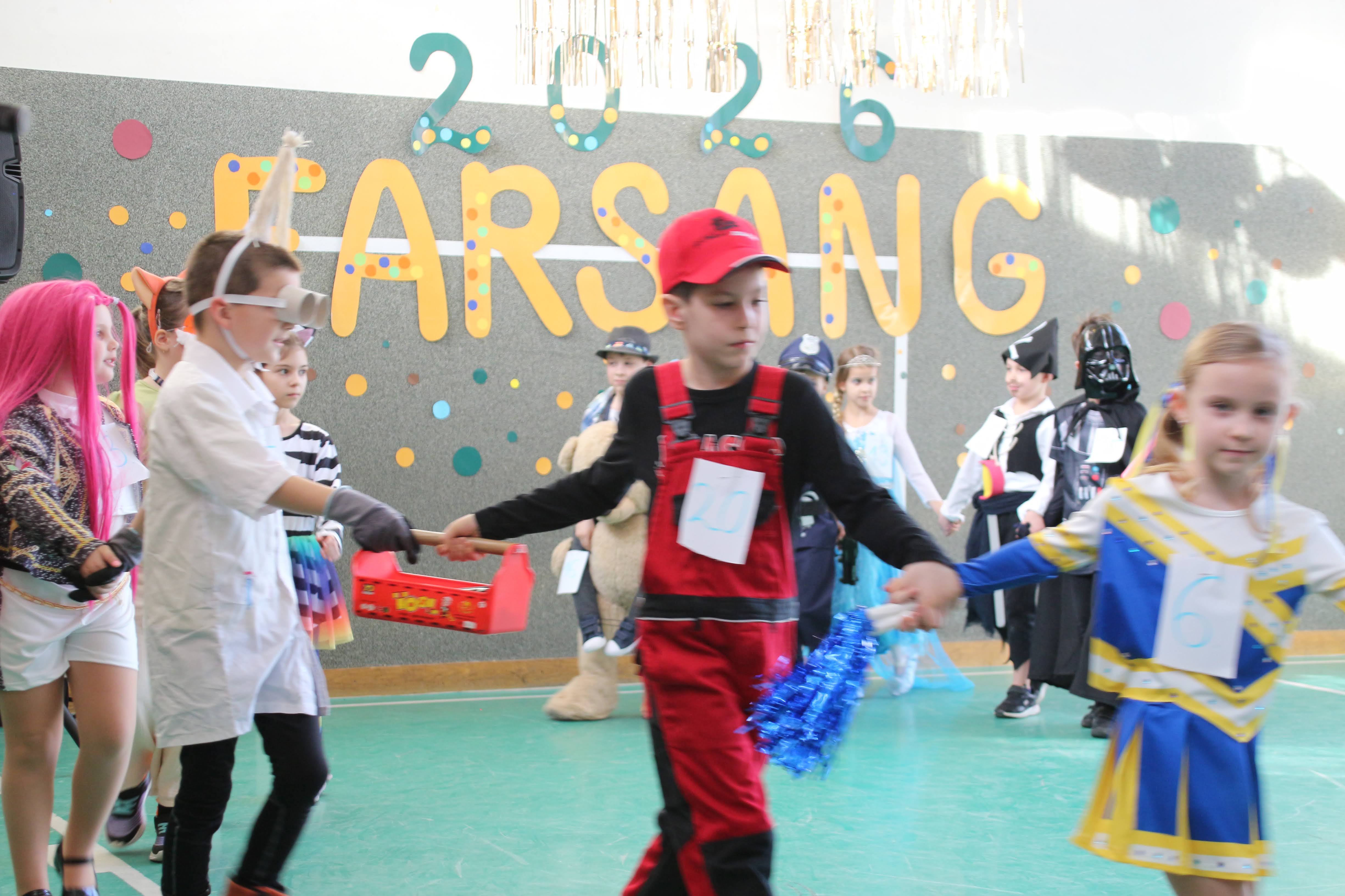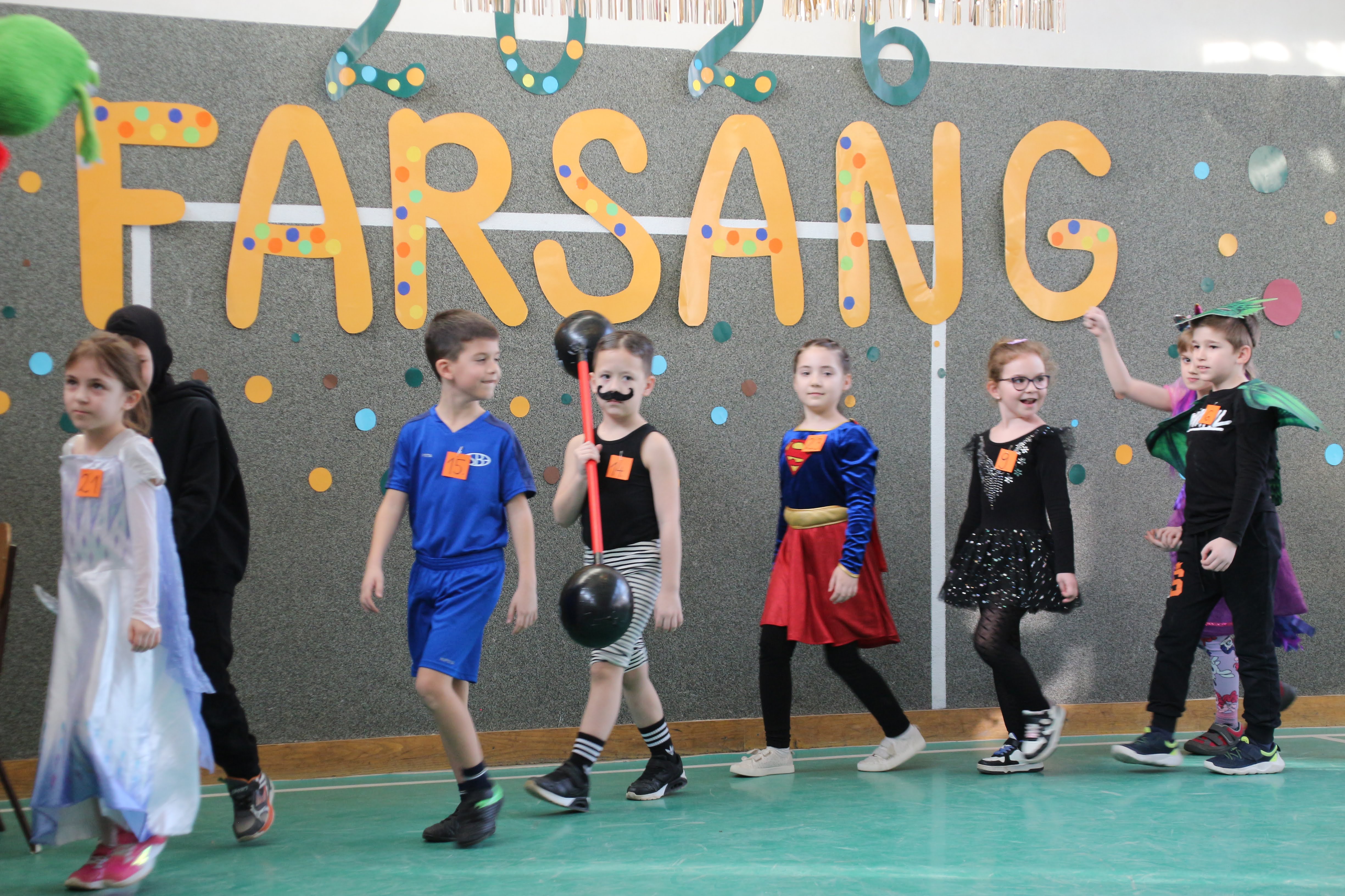 2026. február 13-án pénteken rendeztük meg az alsó tagozatosok farsangi bálját. A két negyedik osztály már hetekkel előtte szorgalmasan készült a műsorra. Három produkcióban szerepeltek . Előadtak egy vicces színdarabot, egy régi tornaóra részletet és zárásként a lányok egy modern tánccal kápráztatták el a közönséget. Közben az osztályok szebbnél szebb , ötletes és tréfás jelmezekben vonultak a zsűri elé. A műsor után, a büfében mindenki evett, ivott a negyedikes szülők által készített finomságokból, majd következett a közös tánc az ebédlőben. Később osztályonként kihúztuk az értékes tombola nyereményeket. Aki nem nyert semmit, az a vigaszdíjnak örülhetett. Ezek után a mulatozásé volt a főszerep , hisz remek hangulatú bulit csaptunk.