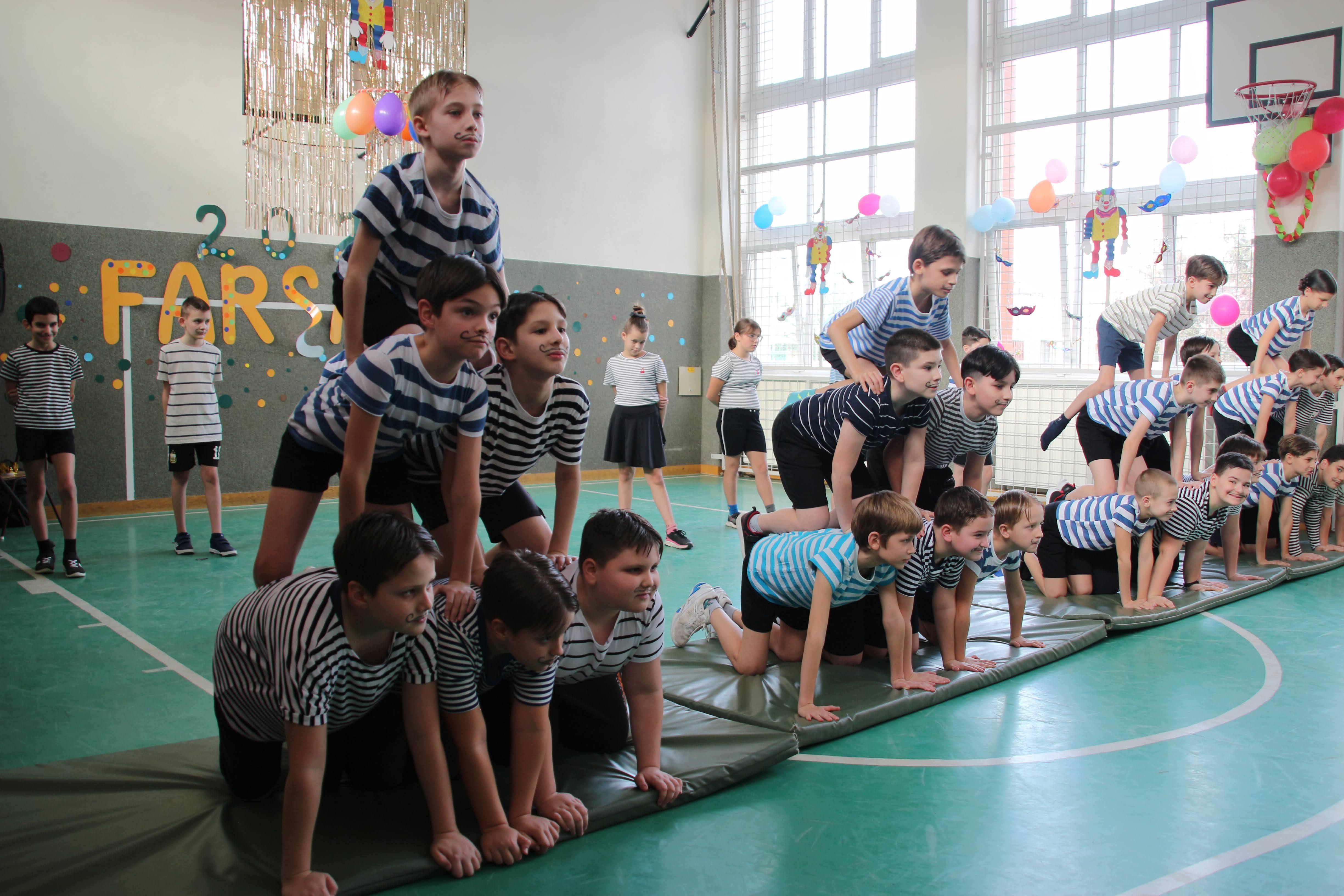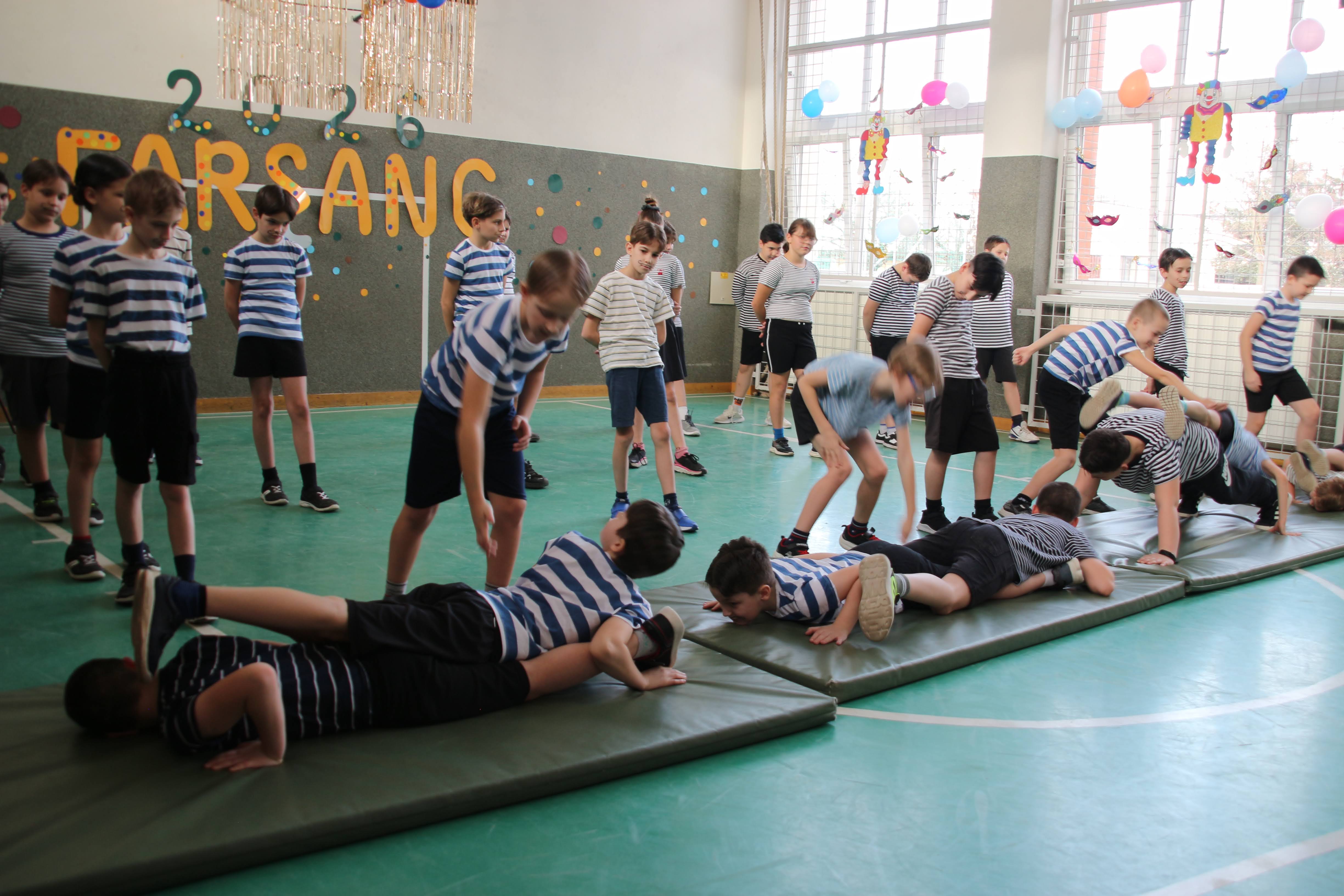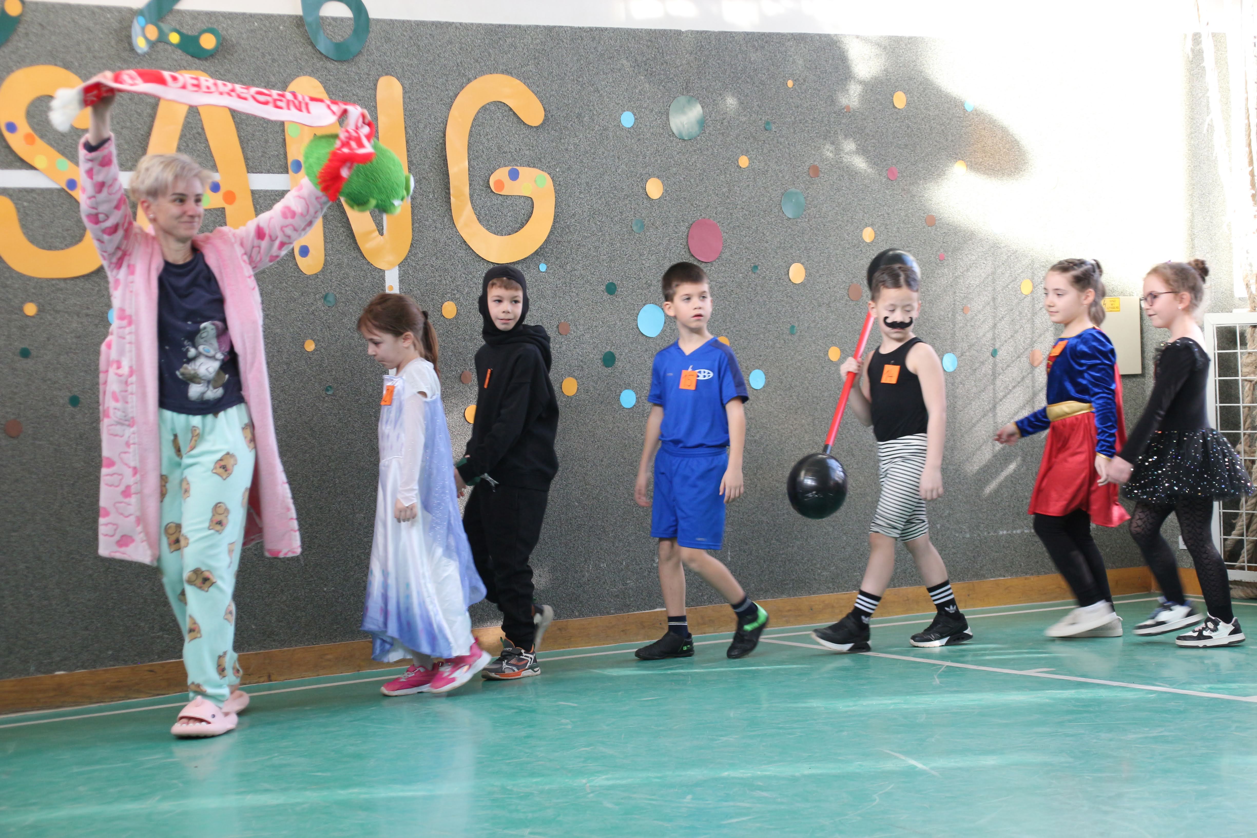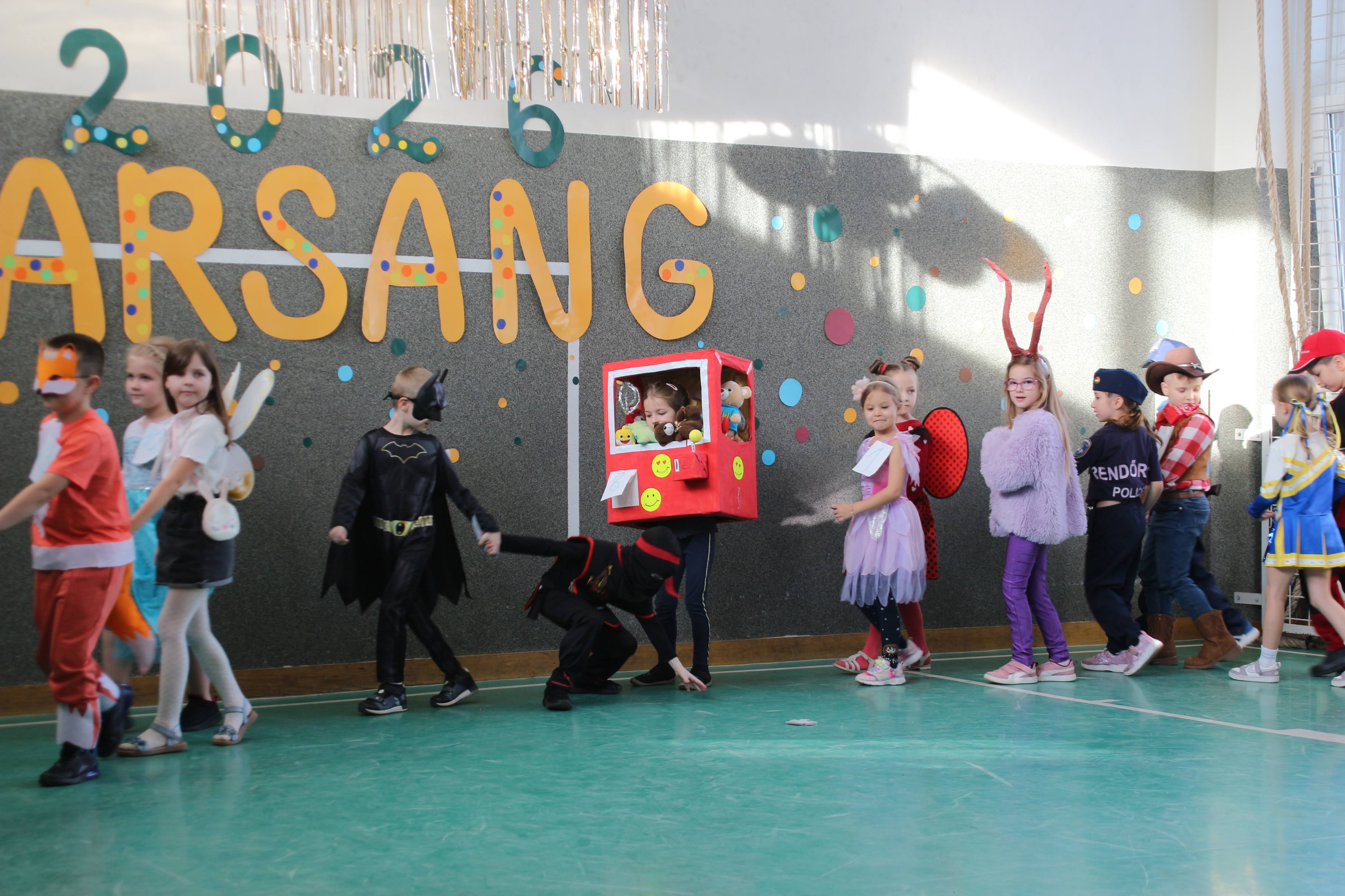 2026. február 13-án pénteken rendeztük meg az alsó tagozatosok farsangi bálját. A két negyedik osztály már hetekkel előtte szorgalmasan készült a műsorra. Három produkcióban szerepeltek . Előadtak egy vicces színdarabot, egy régi tornaóra részletet és zárásként a lányok egy modern tánccal kápráztatták el a közönséget. Közben az osztályok szebbnél szebb , ötletes és tréfás jelmezekben vonultak a zsűri elé. A műsor után, a büfében mindenki evett, ivott a negyedikes szülők által készített finomságokból, majd következett a közös tánc az ebédlőben. Később osztályonként kihúztuk az értékes tombola nyereményeket. Aki nem nyert semmit, az a vigaszdíjnak örülhetett. Ezek után a mulatozásé volt a főszerep , hisz remek hangulatú bulit csaptunk.