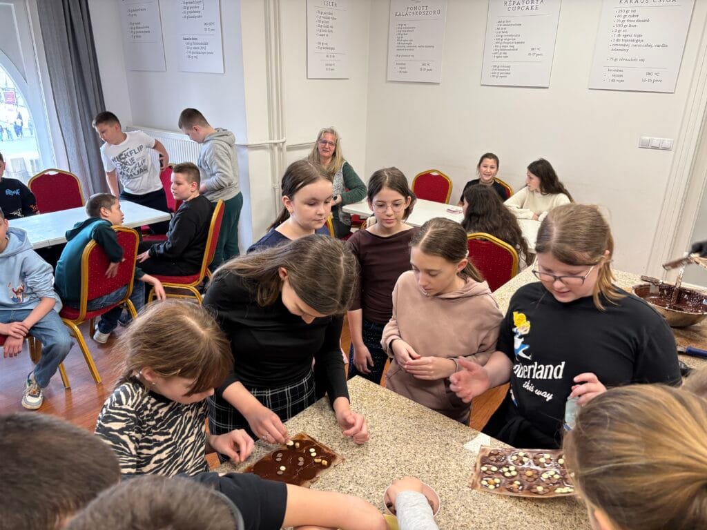 2026. március 19-én egy igazán édes élményben volt része az 5.b osztálynak: ellátogattunk a Szamos Csokoládé Múzeumba, amely a főváros szívében, a Kossuth téren található. Betekinthettünk egy igazi csokoládéműhely működésébe, cukrászmesterek vezetésével sok érdekességet tudtunk meg a csokoládé történetéről és készítéséről.